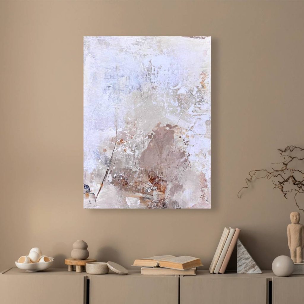 ציור מופשט זה מתאים במיוחד למי שמחפש אמנות לקיר בסלון בסגנון מודרני, נקי וניטרלי.